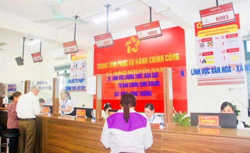 Trung tâm Phục vụ hành chính công xã Hưng Nguyên có đông người dân đến thực hiện các thủ tục hành chính