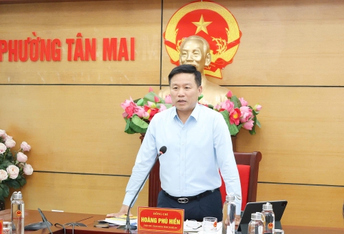 Chủ tịch UBND phường Hoàng Mai Phạm Văn Hào báo cáo kết quả thực hiện chính quyền địa phương 2 cấp thời gian qua; nhiệm vụ, giải pháp thời gian tới |