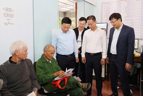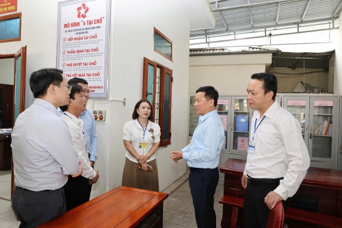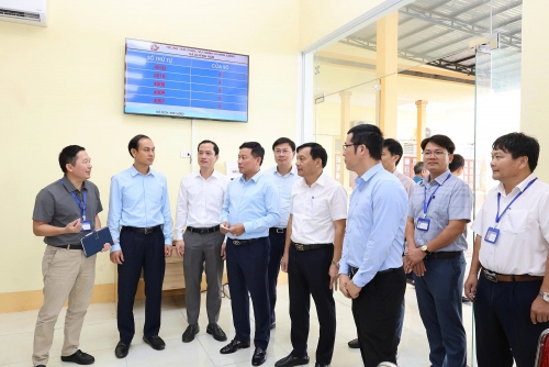 Trước khi làm việc với lãnh đạo các xã, phường, Phó Chủ tịch UBND tỉnh Hoàng Phú Hiền và các thành viên trong Đoàn công tác đã đến kiểm tra hoạt động của Trung tâm Phục vụ hành chính công các xã, phường.