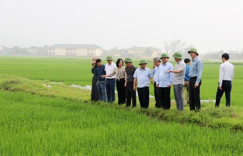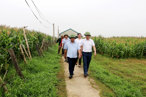 Đoàn công tác đã trực tiếp kiểm tra vùng bãi tại các xóm Văn Viên, Lộc Điền với diện tích khoảng 35 ha, chủ yếu trồng ngô và các loại rau màu. Tiếp đó, đoàn kiểm tra mô hình cánh đồng lúa tại xóm Hưng Lợi 2, một trong 07 cánh đồng lớn của xã, vụ Xuân 2026 sản xuất giống lúa Bắc Thịnh với diện tích 29 ha.