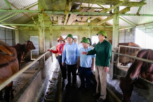Tại xã Hưng Nguyên Nam, đoàn công tác tới thăm mô hình chăn nuôi, trồng trọt khép kín của hộ gia đình ông Nguyễn Văn Thành ở xóm Thành Sơn |