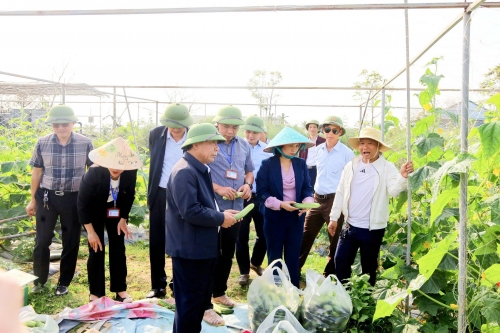 Cũng tại xã Hưng Nguyên Nam, đoàn công tác đã đến thăm mô hình trồng dưa chuột công nghệ cao. Đoàn đánh giá cao việc ứng dụng kỹ thuật thâm canh hiện đại giúp nâng cao giá trị trên đơn vị diện tích |
