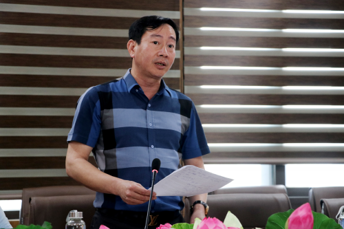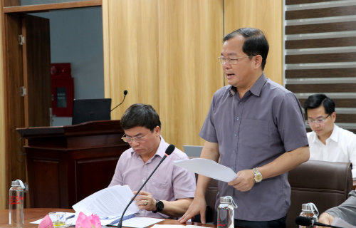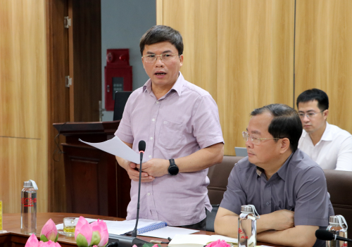 Phó Giám đốc Ban Quản lý dự án đầu tư xây dựng các công trình Dân dụng và Công nghiệp tỉnh Trần Văn Dũng báo cáo tiến độ thực hiện do đơn vị làm chủ đầu tư |