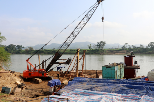 Hiện nay, Chủ đầu tư – Ban Quản lý dự án công trình giao thông đang đốc thúc nhà thầu huy động máy móc để san lấp nền và tiến hành khoan nhồi mố M1 cầu Đức Sơn |