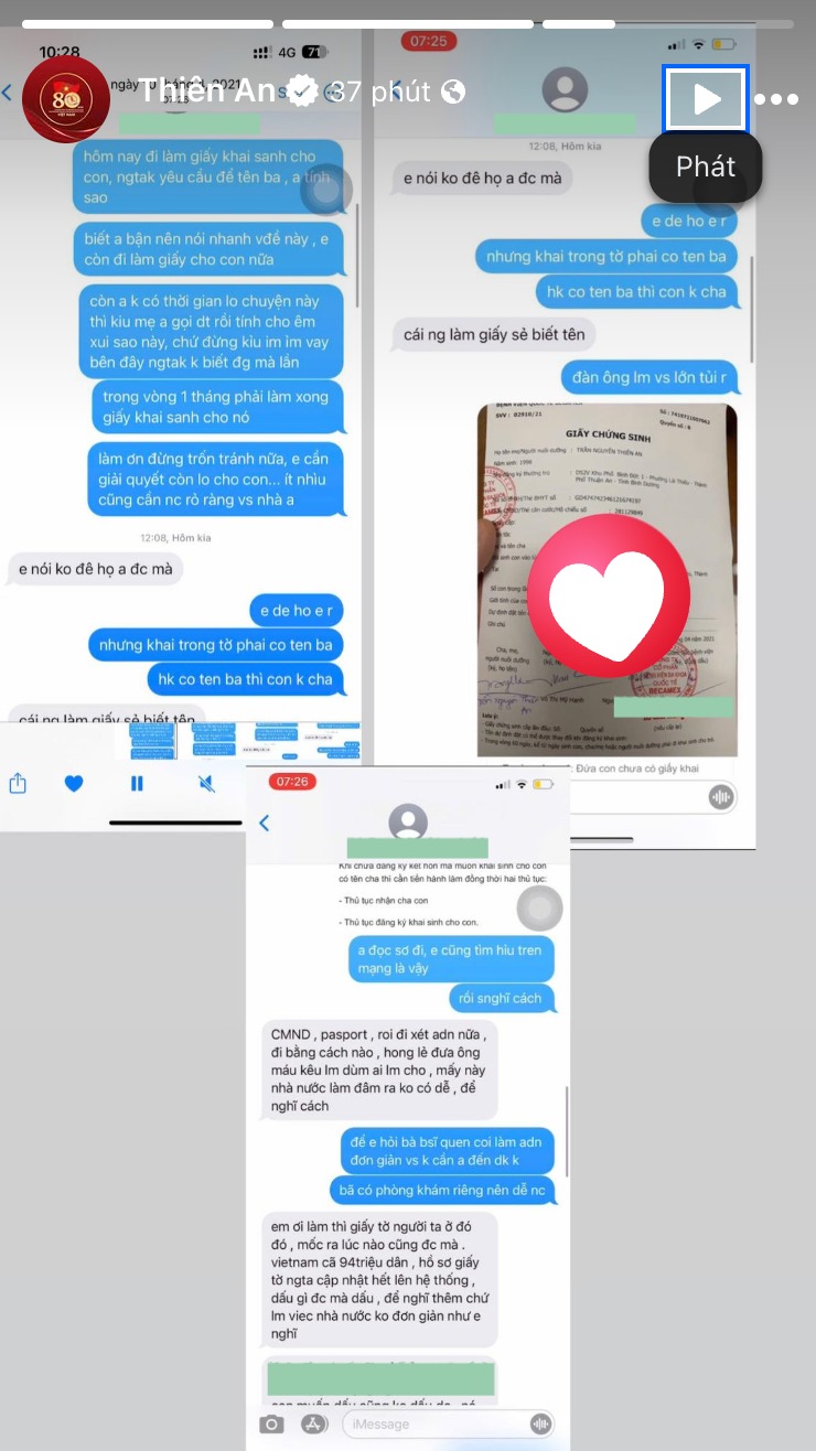 | Thiên An tung full tin nhắn trao đổi khi làm thủ tục giấy khai sinh cho con |