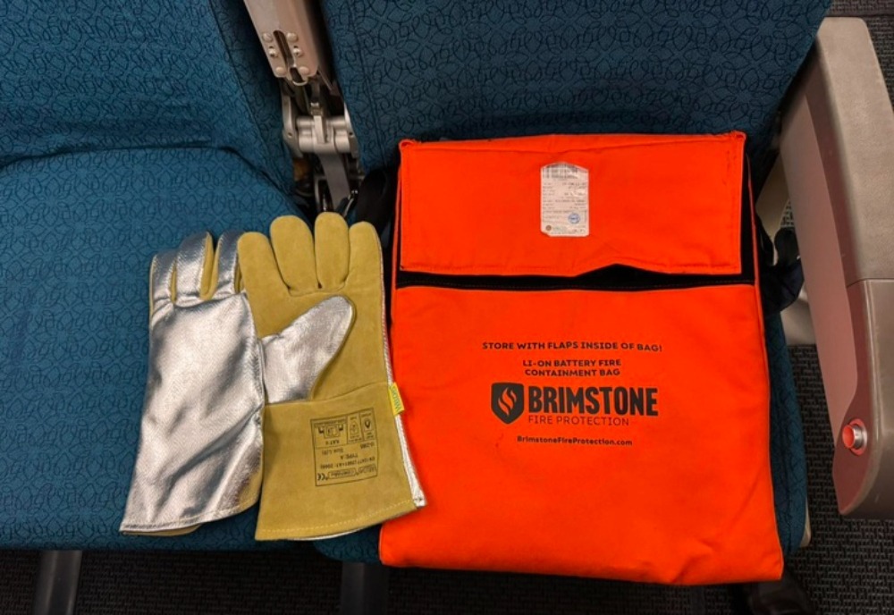 Găng tay cách nhiệt và túi chống cháy được trang bị trên các chuyến bay VAG. |