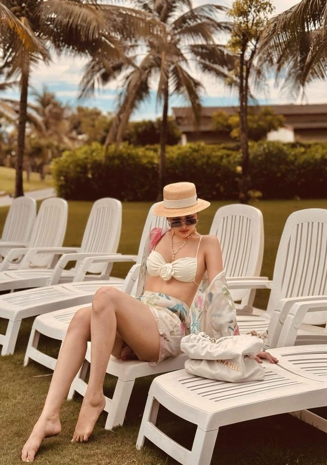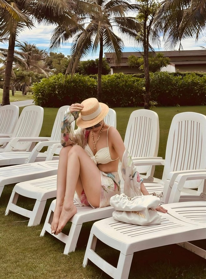 Không chỉ là thời trang đi biển, từng khung hình còn toát lên khí chất “nàng dâu hào môn” chuẩn mực: Sang trọng, tinh tế và đầy tự tin.