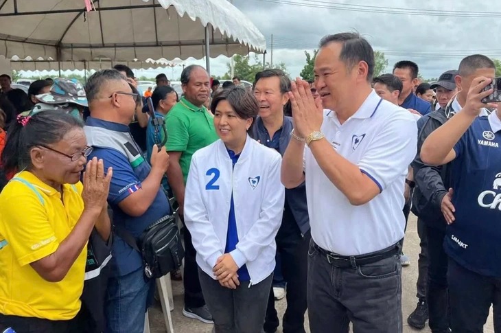 Thủ tướng Thái Lan Anutin Charnvirakul đến thăm tỉnh Si Sa Ket ngày 21-9 - Ảnh: BANGKOK POST/ĐẢNG BHUMJAITHAI |