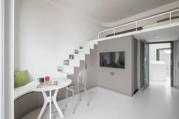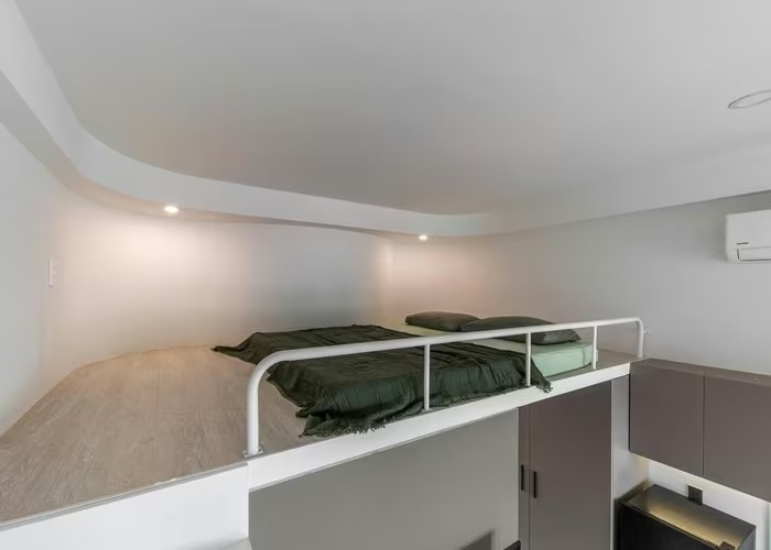 Mỗi căn hộ có chiều cao trần 3,5m, tầng dưới dành cho cho phòng khách và bếp, tầng lửng biến thành phòng ngủ nhỏ gọn nhưng đảm bảo riêng tư. Ảnh: Sonmeo Nguyen Art Studio |