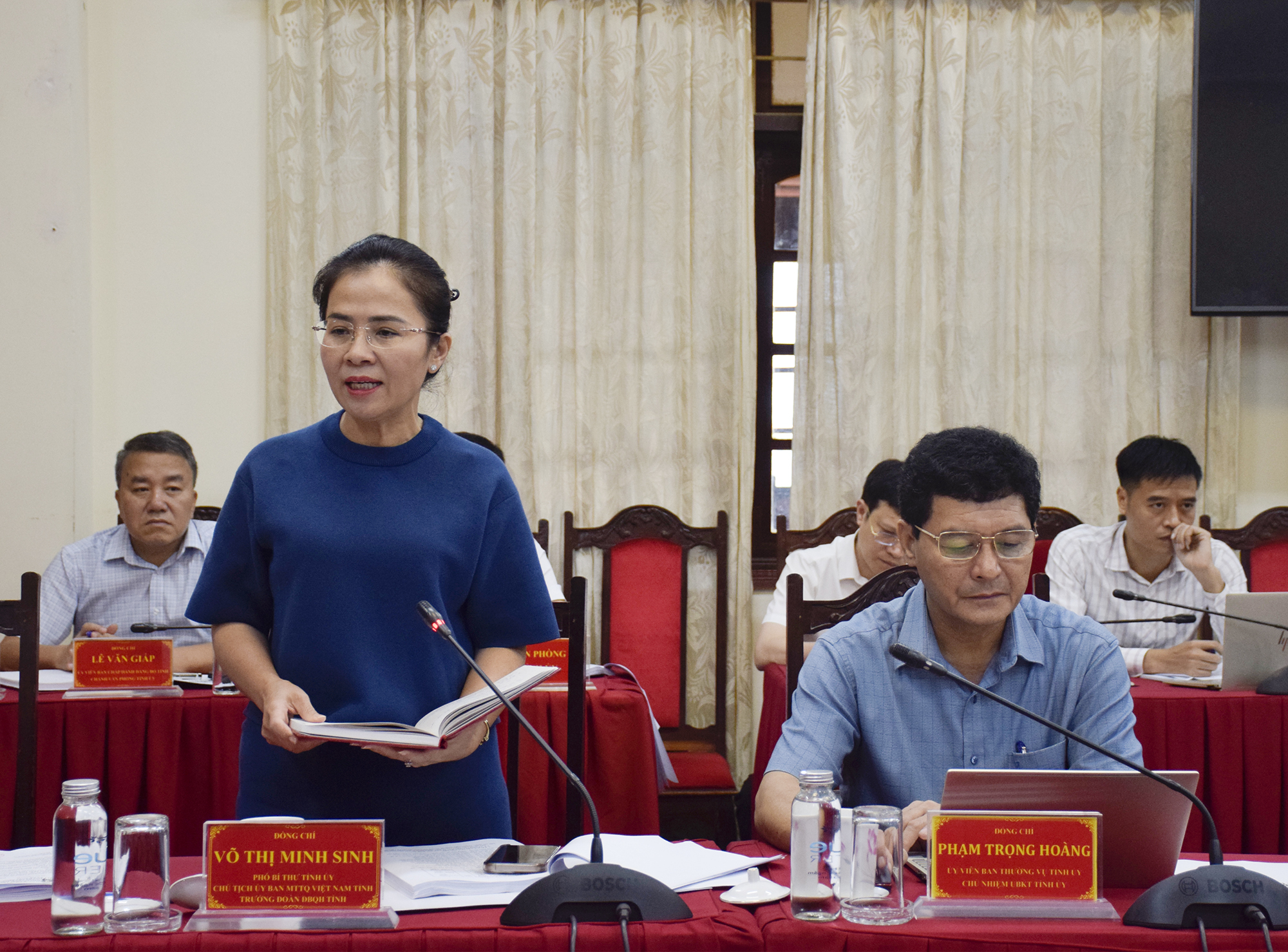 Phó Bí thư Tỉnh ủy Võ Thị Minh Sinh đề nghị đầu tư trang thiết bị làm việc cho cán bộ cấp xã; bên cạnh đó cần quan tâm xây dựng các cơ chế, chính sách phát triển nguồn nhân lực tại các xã |