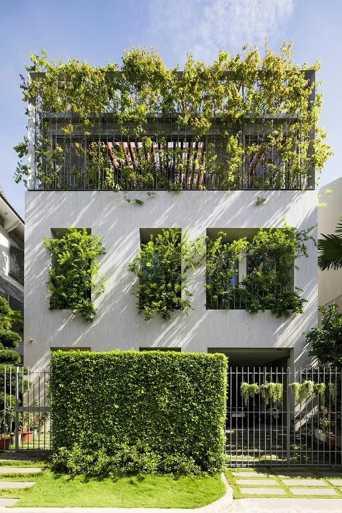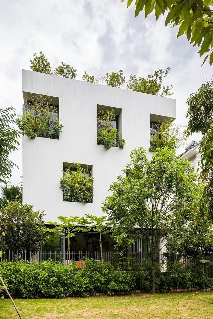 Việc trồng cây ở cửa sổ giúp chặn ánh sáng mặt trời trực tiếp, cung cấp gió mát và làm sáng không gian bên trong. Ảnh: Hiroyuki Oki |