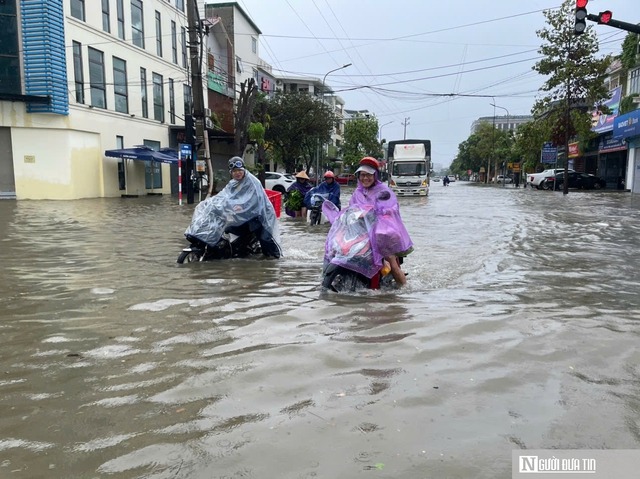 Mưa lớn xối xả trước bão ssoos 10 khiến nhiều tuyến phố ở Nghệ An ngập sâu. |