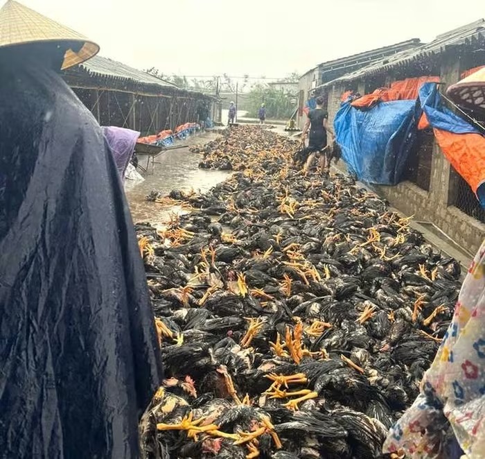 Ngoài ra gia đình anh còn phải tiêu hủy hơn 10.000 con gà loại 0,5kg đã chết do lũ. Theo tính toán ban đầu, tổng đàn gà của gia đình trị giá hơn 2 tỷ đồng, chưa kể một khối lượng lớn thức ăn dự trữ đã bị hư hỏng do ngấm nước.