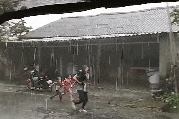 Ngày 29/9, mạng xã hội lan truyền video đầy xúc động khi người cha ở vùng lũ đưa các con vội vã từ nhà chạy sang hàng xóm ở nơi cao hơn để tránh cơn mưa lũ sắp ập đến.