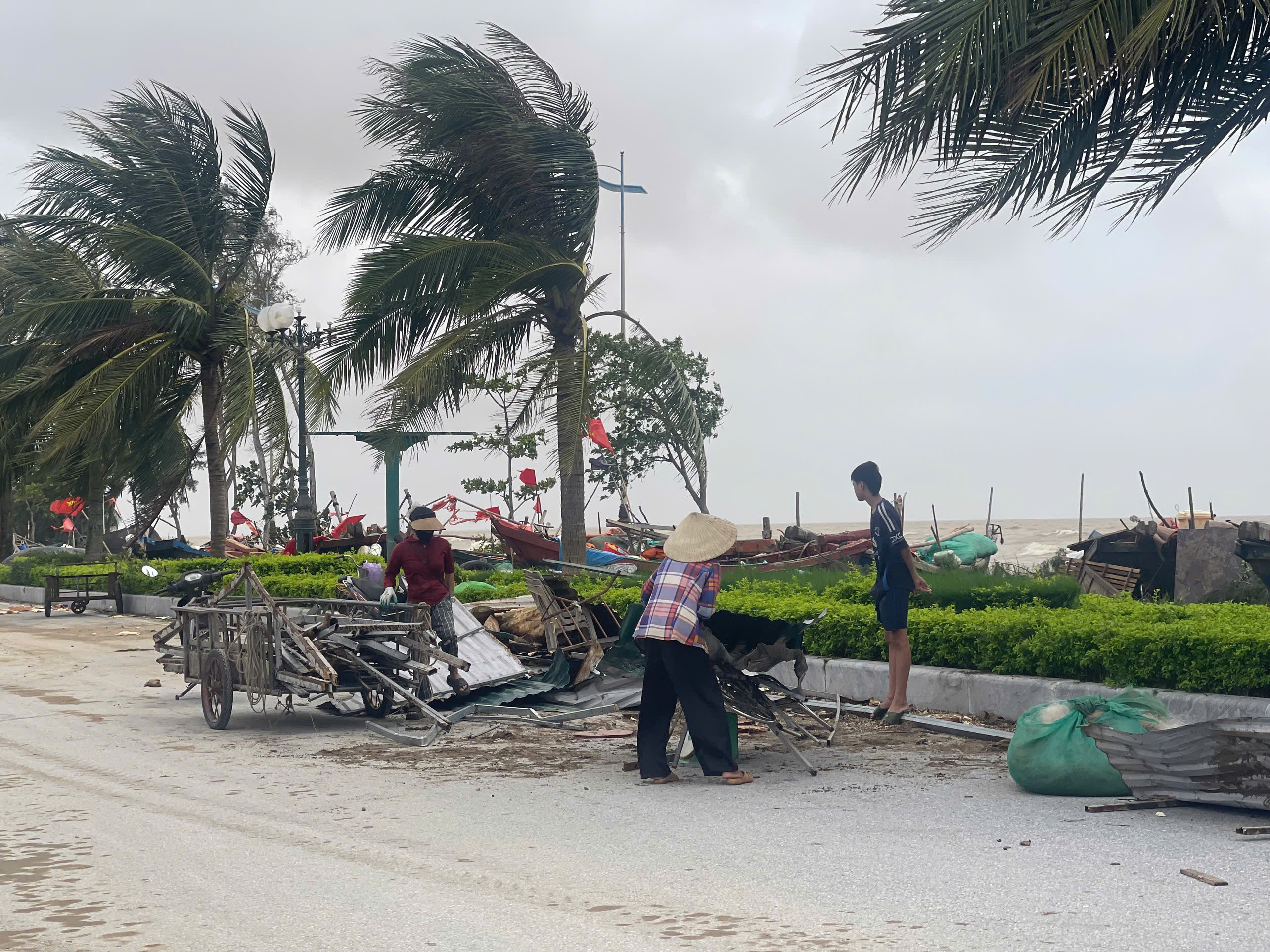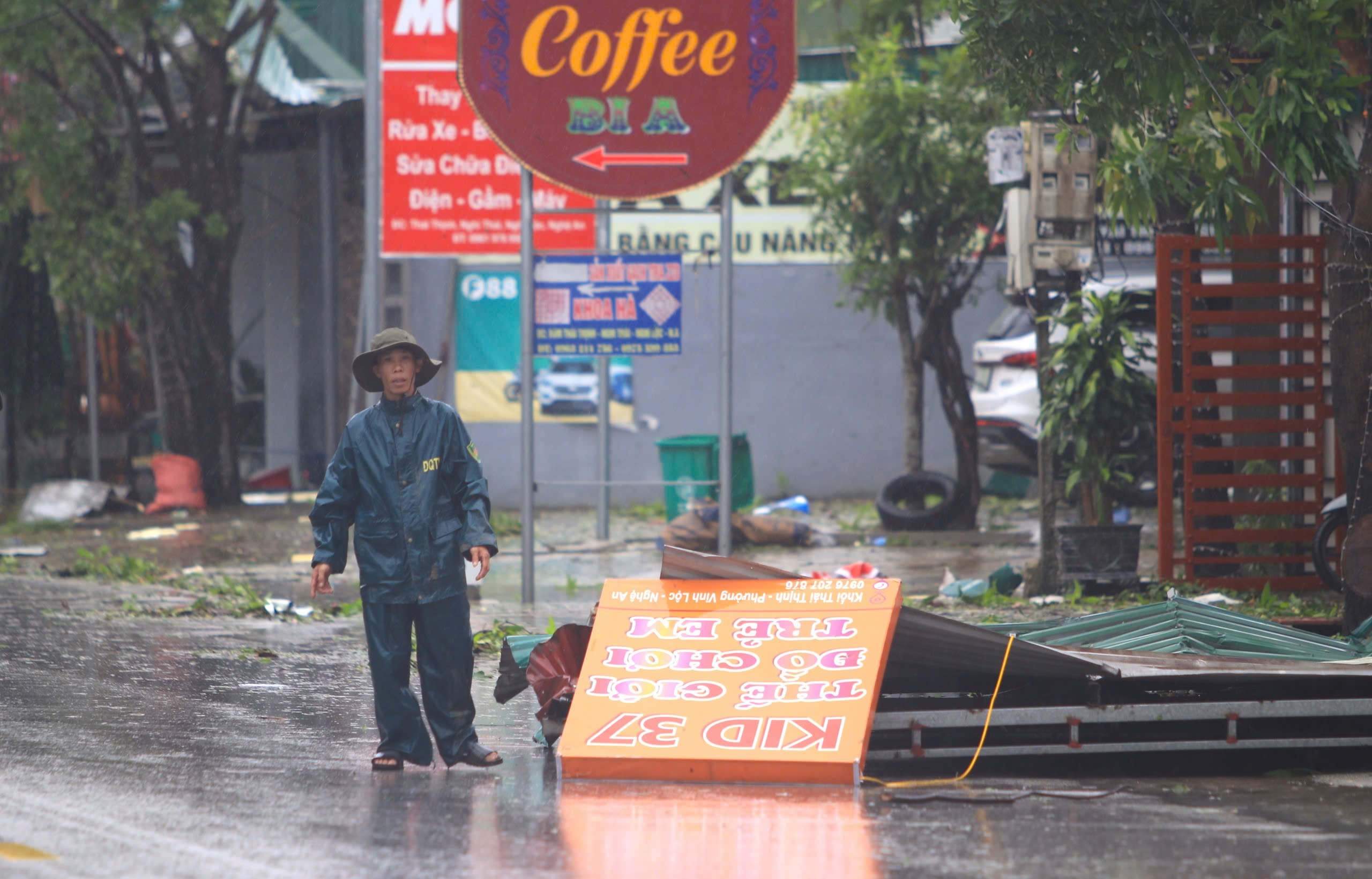 Sáng 30/9, con đường dẫn vào trung tâm du lịch biển Sầm Sơn, phường Sầm Sơn, Thanh Hoá, vắng du khách. Nằm rìa tâm bão, Sầm Sơn hứng chịu gió cấp 6-9, giật tăng hai cấp, gây mưa to kéo dài suốt 12 giờ. Khu phố vốn sầm uất với hàng chục nhà hàng, khách sạn nay cây cối bật gốc, biển hiệu, khung sắt vỡ đổ.