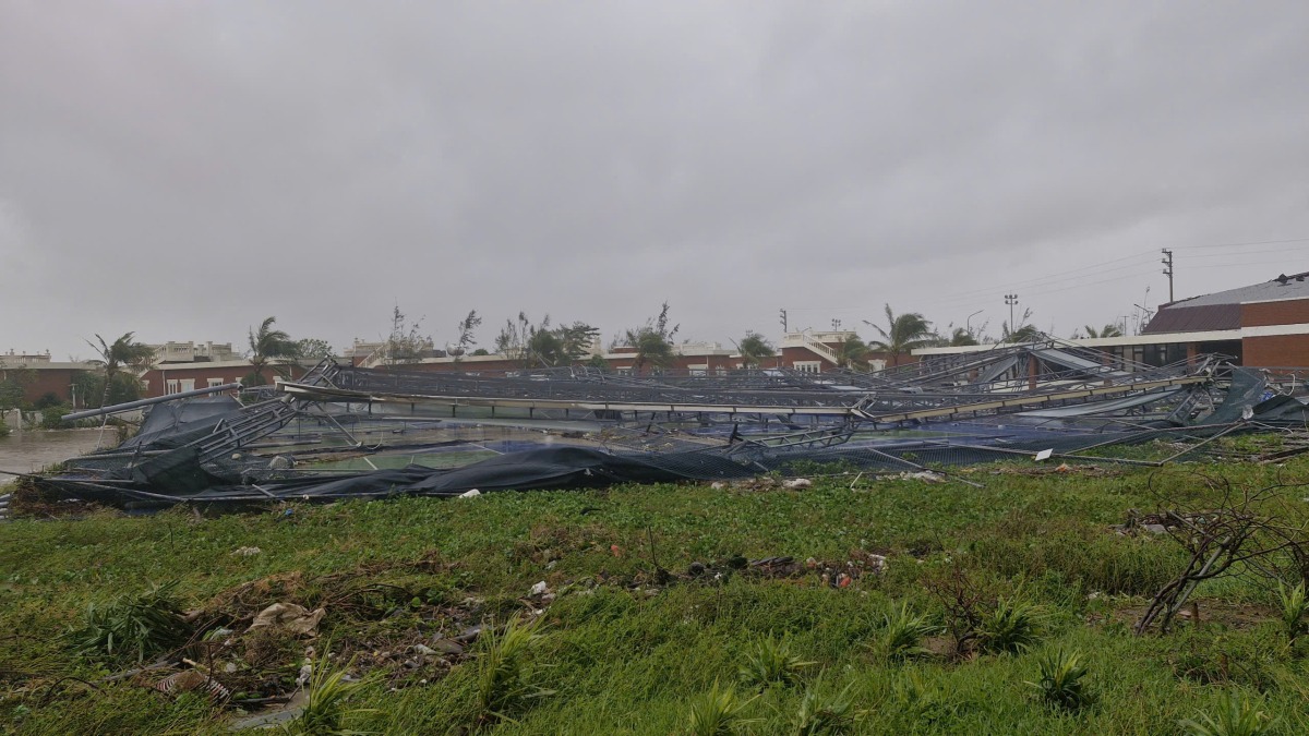 Cách khu du lịch Xuân Thành khoảng 500 m, sân pickleball rộng hơn 1.000 m2 cũng bị gió bão làm đổ sập.