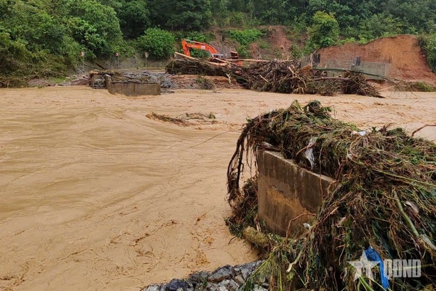 Nhiều công trình giao thông, thủy lợi bị lũ tàn phá. |