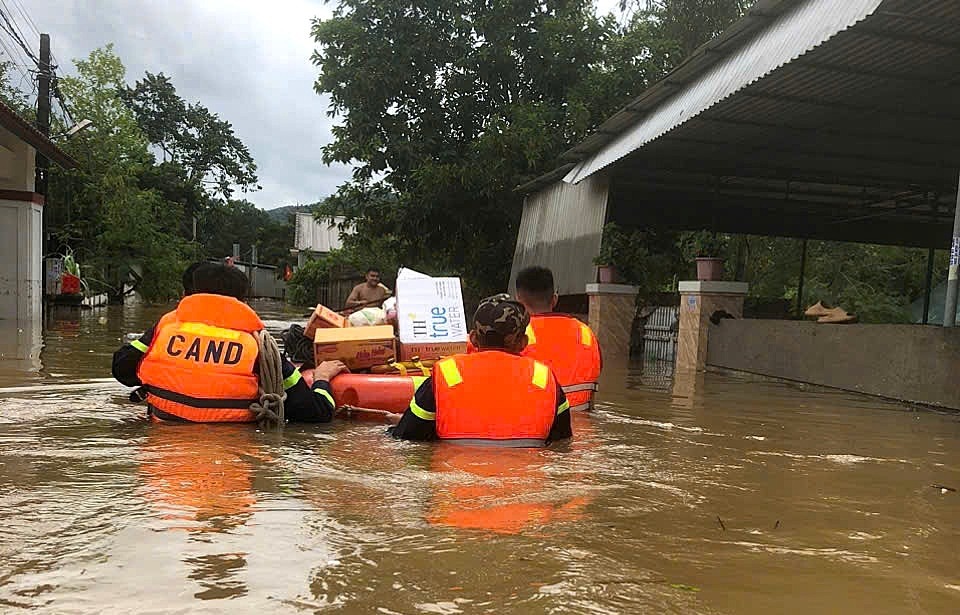 Trong đợt mưa lũ do bão số 10 gây ra trên địa bàn Nghệ An, Công an tỉnh đã huy động hàng nghìn cán bộ, chiến sĩ túc trực, tham gia ứng cứu, sơ tán dân, bảo đảm an toàn tính mạng và tài sản của nhân dân.