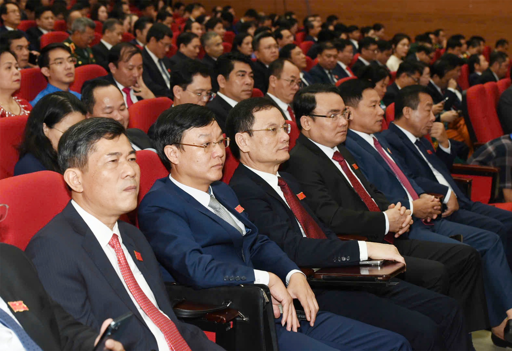 Phó Bí thư Tỉnh ủy, Chủ tịch UBND tỉnh Lê Hồng Vinh trình bày tóm tắt báo cáo chính trị |