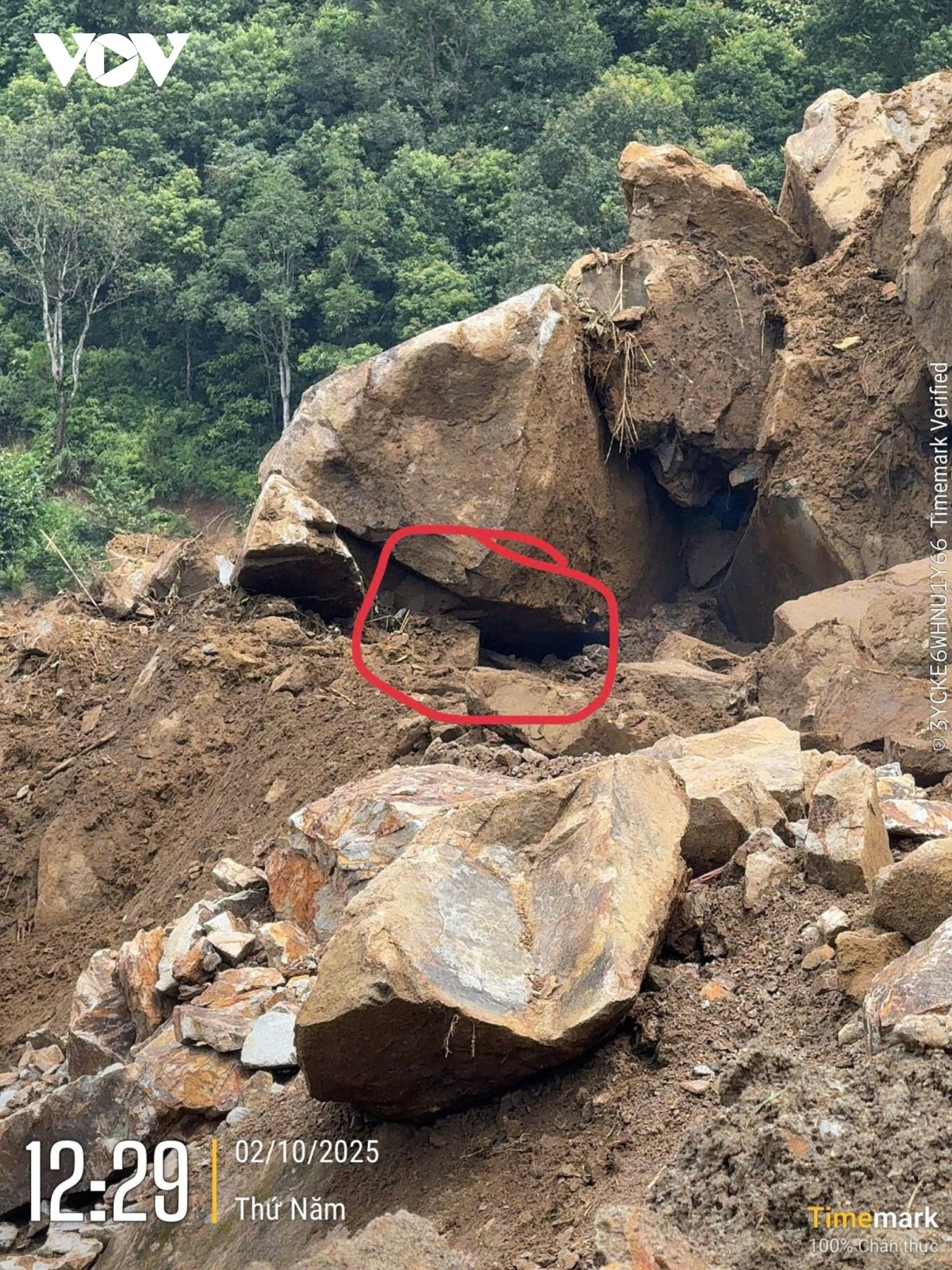 Hiện trường cho thấy, chiếc xe ô tô bị vùi lấp sâu trong một tảng đá lớn. Tuy nhiên, theo thông tin từ lực lượng chức năng, vẫn còn khe hở tại vị trí chiếc xe. Đây là một tín hiệu nhỏ thắp lên hy vọng mong manh cho công tác cứu hộ.