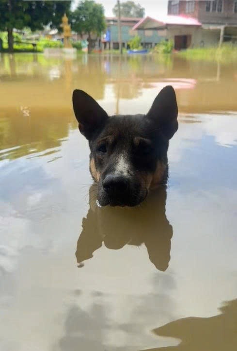 Ngày 1/10, giữa tình hình mưa lũ khắp các tỉnh miền Bắc và miền Trung, mạng xã hội lan truyền hình ảnh và video về một chú chó chìm ngập trong dòng nước dâng cao, biểu cảm đáng thương. Nhiều trang mạng xã hội chia sẻ lại với chú thích hình ảnh ghi lại trong cơn bão lũ ở Việt Nam, với dòng mô tả "Lũ về nhanh quá, chủ vội chạy lũ quên tháo xích cho chú chó cưng".