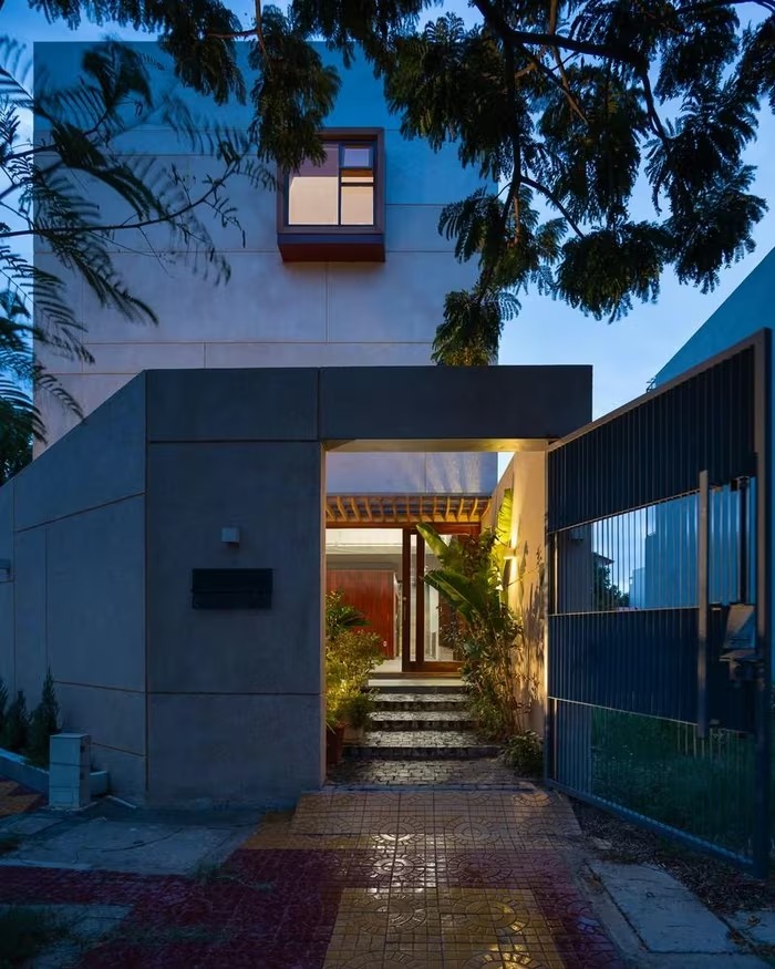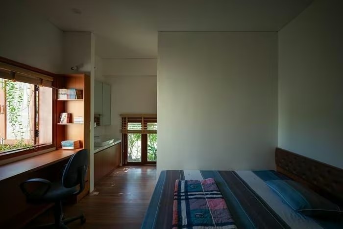 Các không gian riêng tư được nén chặt một cách có chủ đích. Do đó, ngôi nhà có các khoảng trống để kết nối, tạo ra vùng đệm nhiệt và lưu thông không khí mát mẻ. Ảnh: Quangdam |