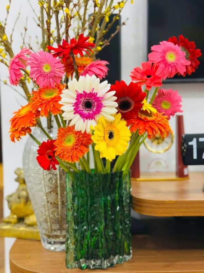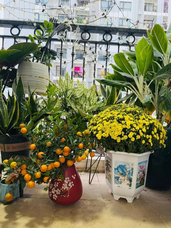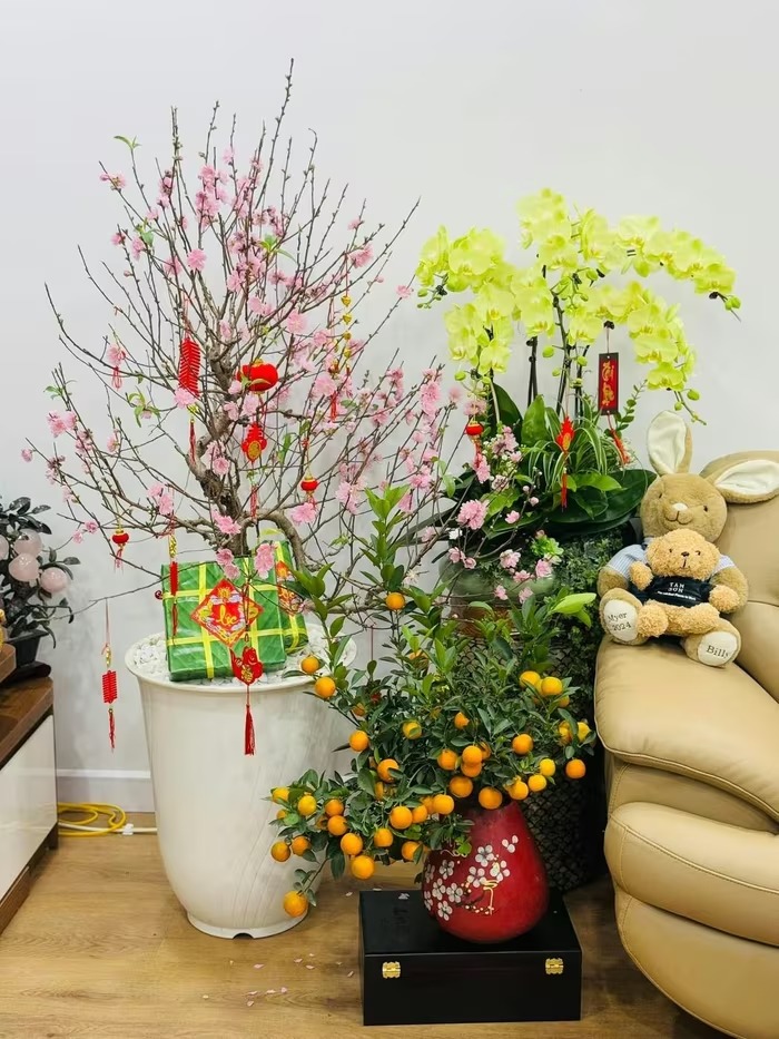 Dịp Tết, phòng khách như bừng sáng với đủ các loại hoa tươi như cúc, đào, lan, quất...Ảnh: FB Ngọc Hà Lê |