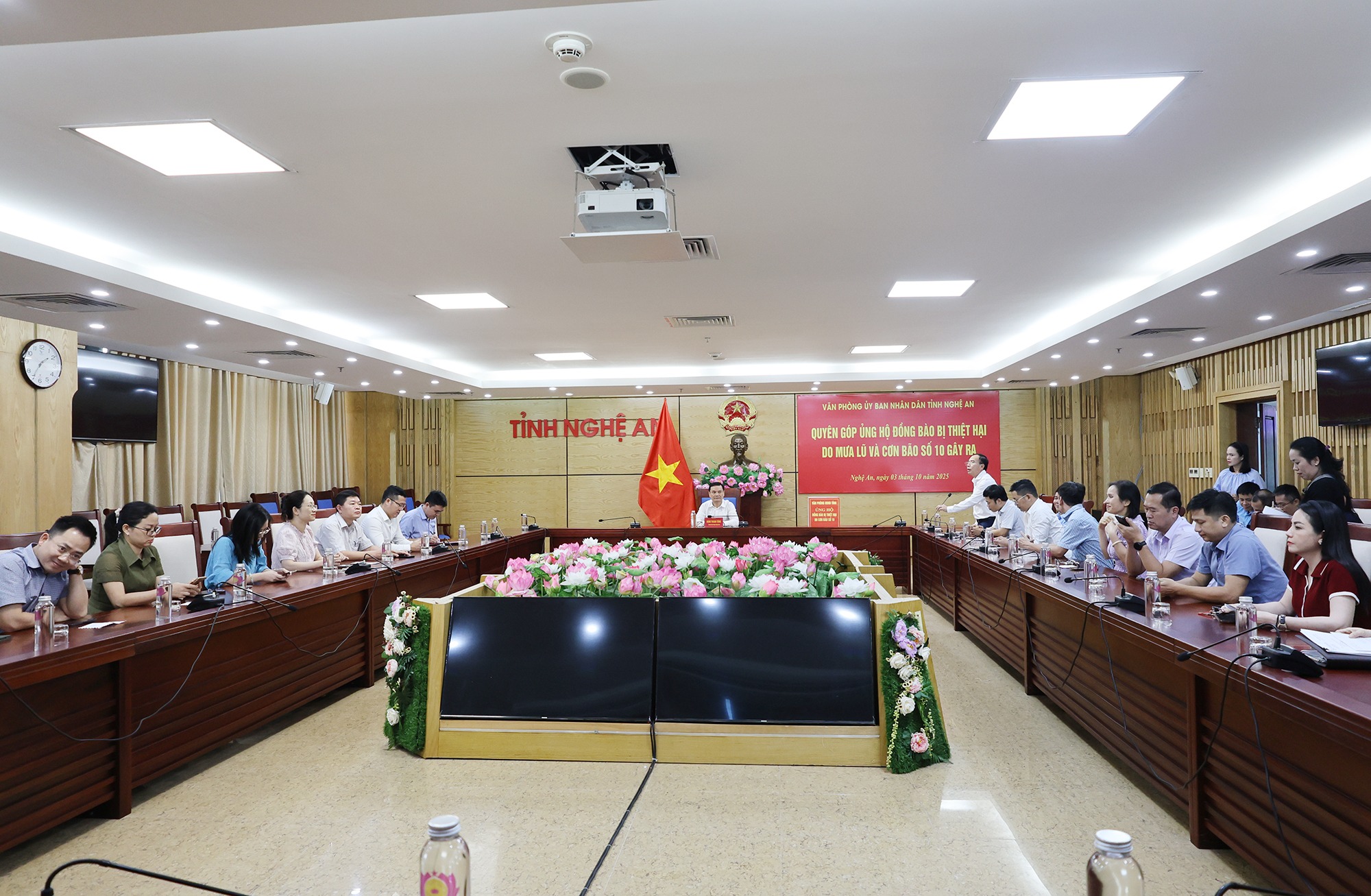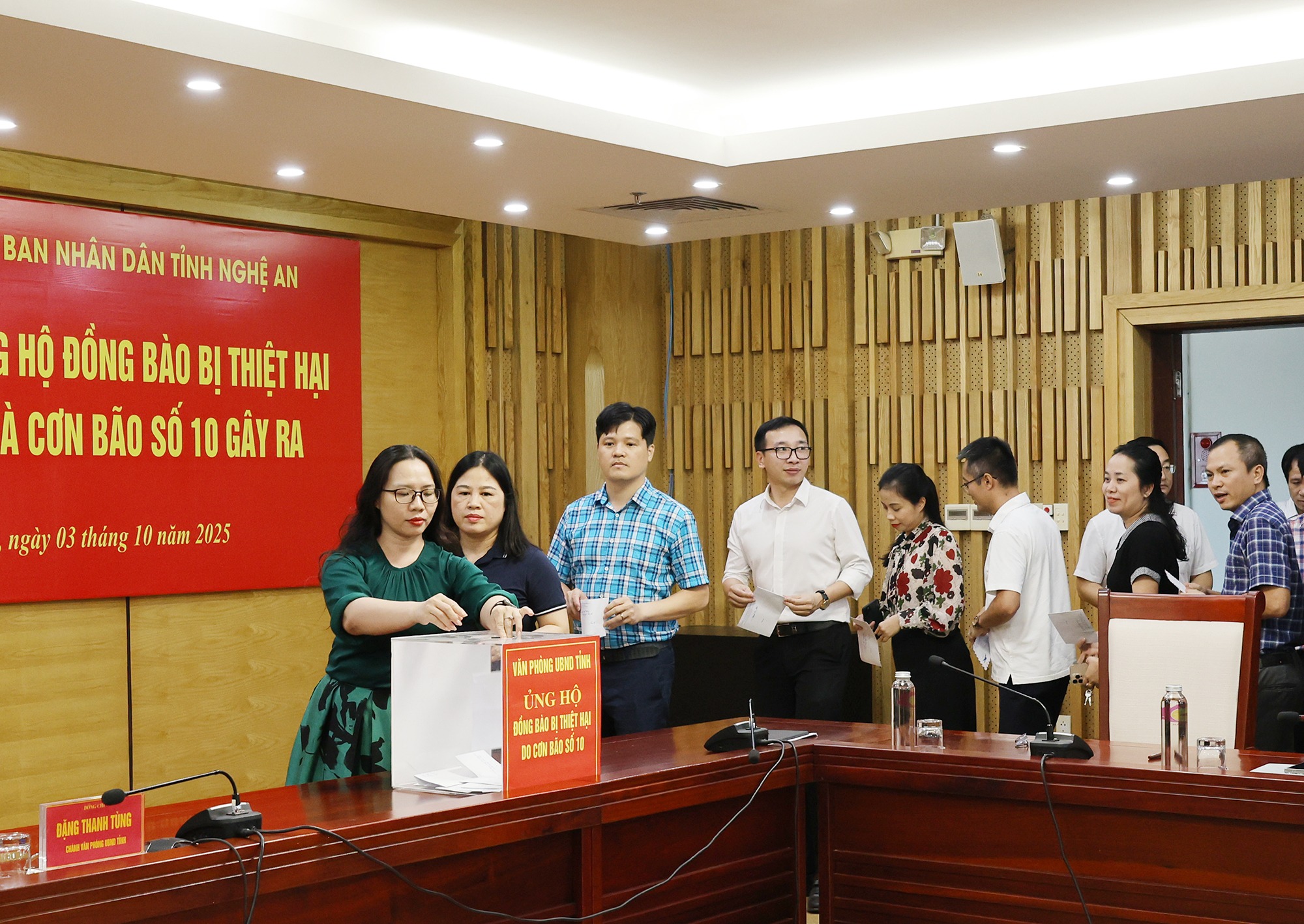 Bằng tình cảm và trách nhiệm, lãnh đạo Văn phòng UBND tỉnh và toàn thể cán bộ, công chức, viên chức, người lao động trong cơ quan đã trực tiếp ủng hộ, chung tay chia sẻ, hỗ trợ Nhân dân vùng lũ khắc phục hậu quả thiên tai, sớm ổn định cuộc sống. Số tiền Văn phòng UBND tỉnh kêu gọi, đóng góp sẽ được chuyển đến Ủy ban MTTQ tỉnh, Ban Cứu trợ tỉnh để chuyển đến giúp đỡ đồng bào khắc phục hậu quả thiên tai trong thời gian nhanh nhất.