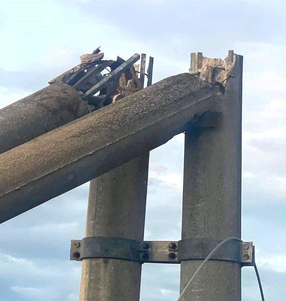 Và cột điện bị gãy sau bão "lộ" kết cấu cốt thép vuông trong cột. |