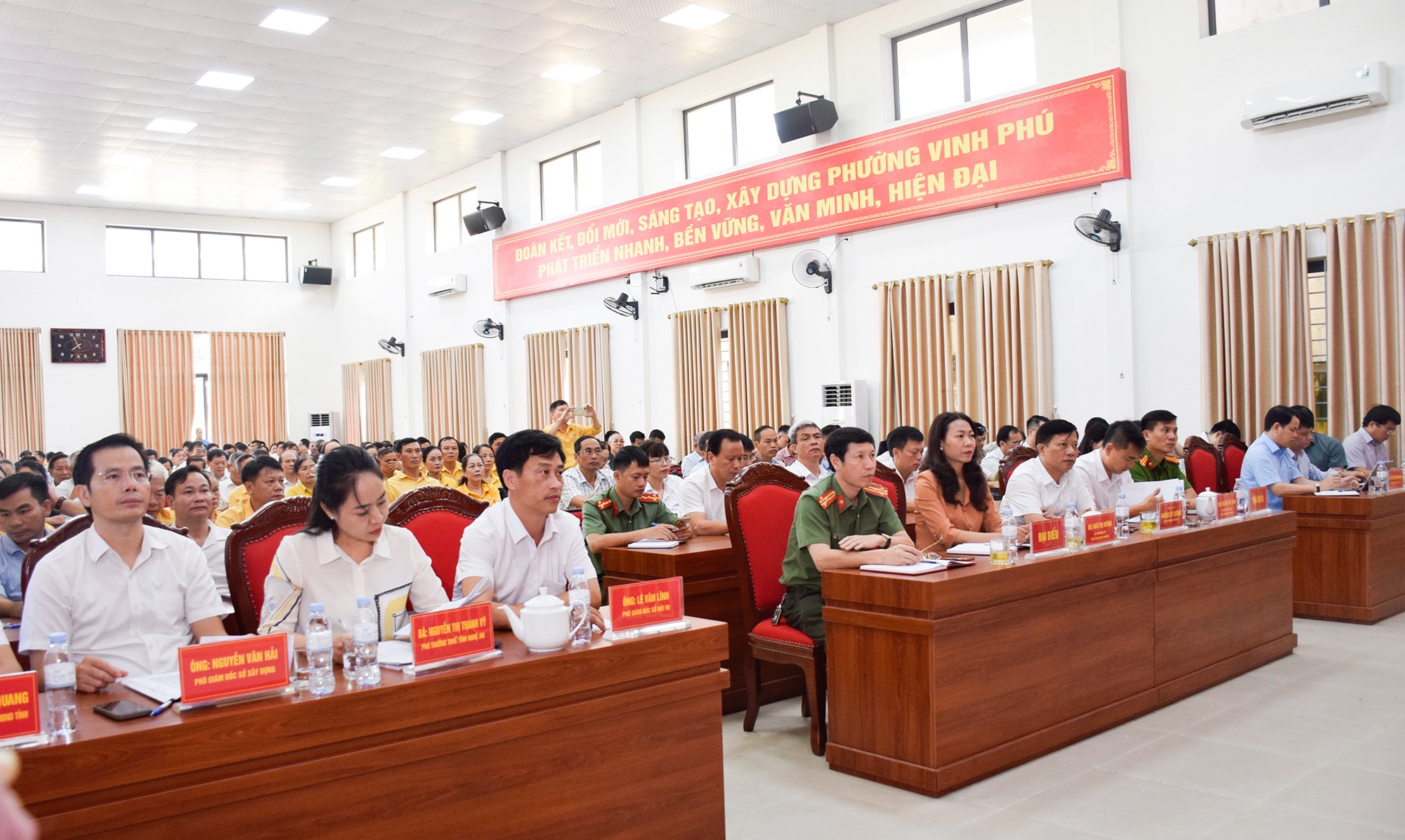 Tham dự hội nghị có lãnh đạo các Sở, ban, ngành, lãnh đạo phường Vinh Phú và cử tri phường Vinh Phú.