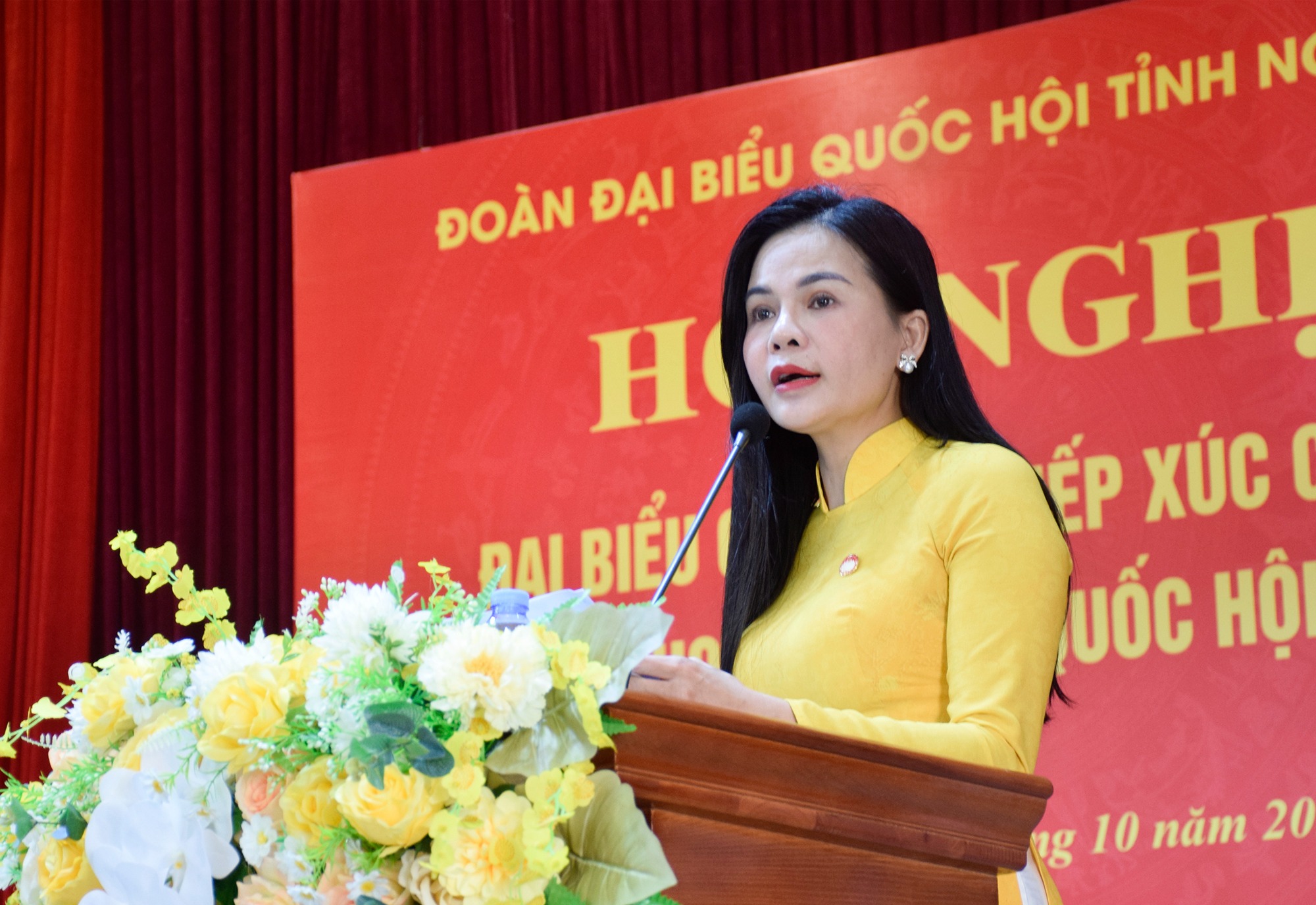 Phát biểu tại hội nghị, đại biểu Thái Thanh Quý - Phó Trưởng Ban Thường trực Ban Chính sách, chiến lược Trung ương đã chia sẻ những thiệt hại của nhân dân phường Vinh Phú nói riêng và nhân dân Nghệ An nói chung do ảnh hưởng của những đợt thiên tai gần đây.