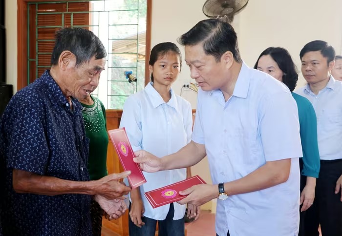 Chủ tịch UBND tỉnh Lê Hồng Vinh trao quà, động viên những hộ dân bị thiệt hại nặng do cơn bão số 10 gây ra |