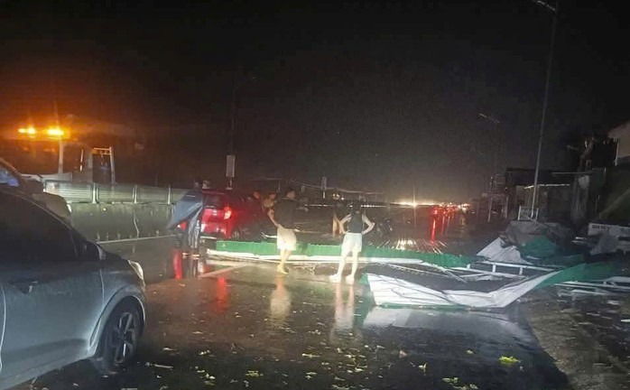 Tại quốc lộ 1A, đoạn qua xã Nghi Lộc, gió lốc lớn cuốn bay một mái tôn rơi trúng một xe ô tô. Thời điểm xảy ra sự việc, có rất nhiều phương tiện lưu thông nhưng may mắn không xảy ra thương vong về người.