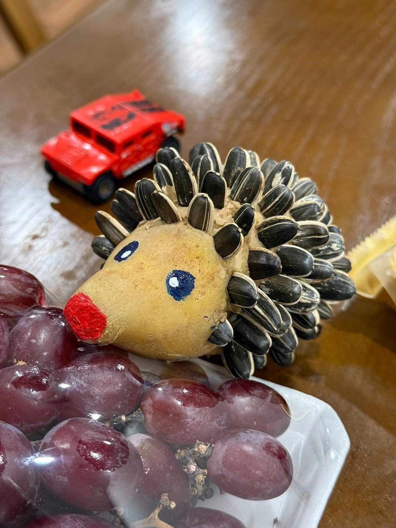 Một bà mẹ trẻ đảm nhận nhiệm vụ làm hình thú trái cây cho lớp con. Thay vì chọn nhím nho như truyền thống, chị quyết định "đổi gió" bằng củ khoai và hạt hướng dương. Kết quả là chú nhím ra đời với vẻ ngoài vừa thật vừa... hơi sai sai, khiến dân mạng phải bật cười: "Nhím này mà sống dậy chắc cũng hoang mang lắm!"