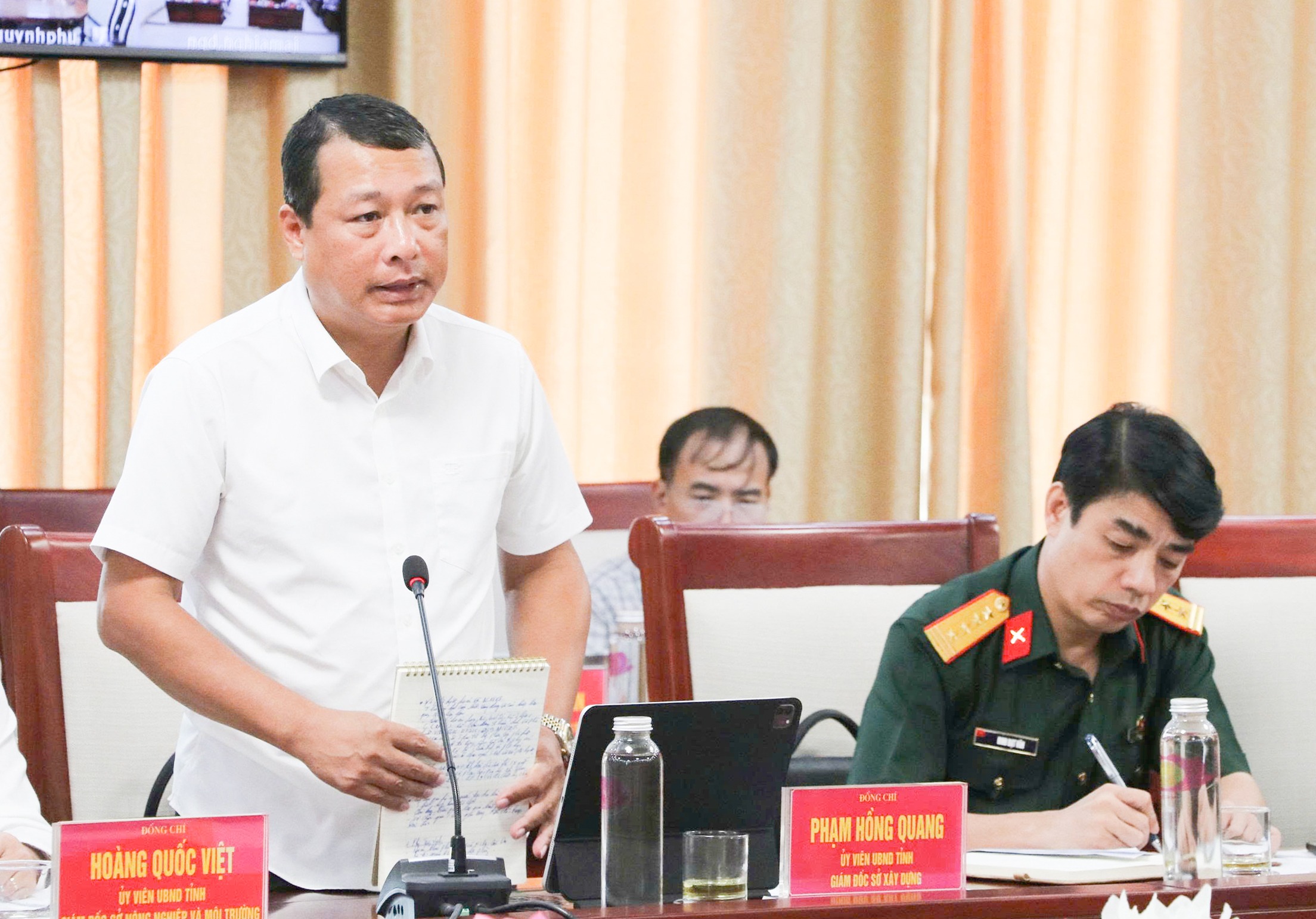 Phó Chủ tịch UBND tỉnh Phùng Thành Vinh đề nghị cần làm tốt công tác cảnh báo thiên tai cho người dân; cần đánh giá tổng thể để lựa chọn, xây dựng các khu tái định cư phù hợp với tình hình thực tế; xây dựng sinh kế bền vững cho nhân dân miền núi để ổn định cuộc sống |