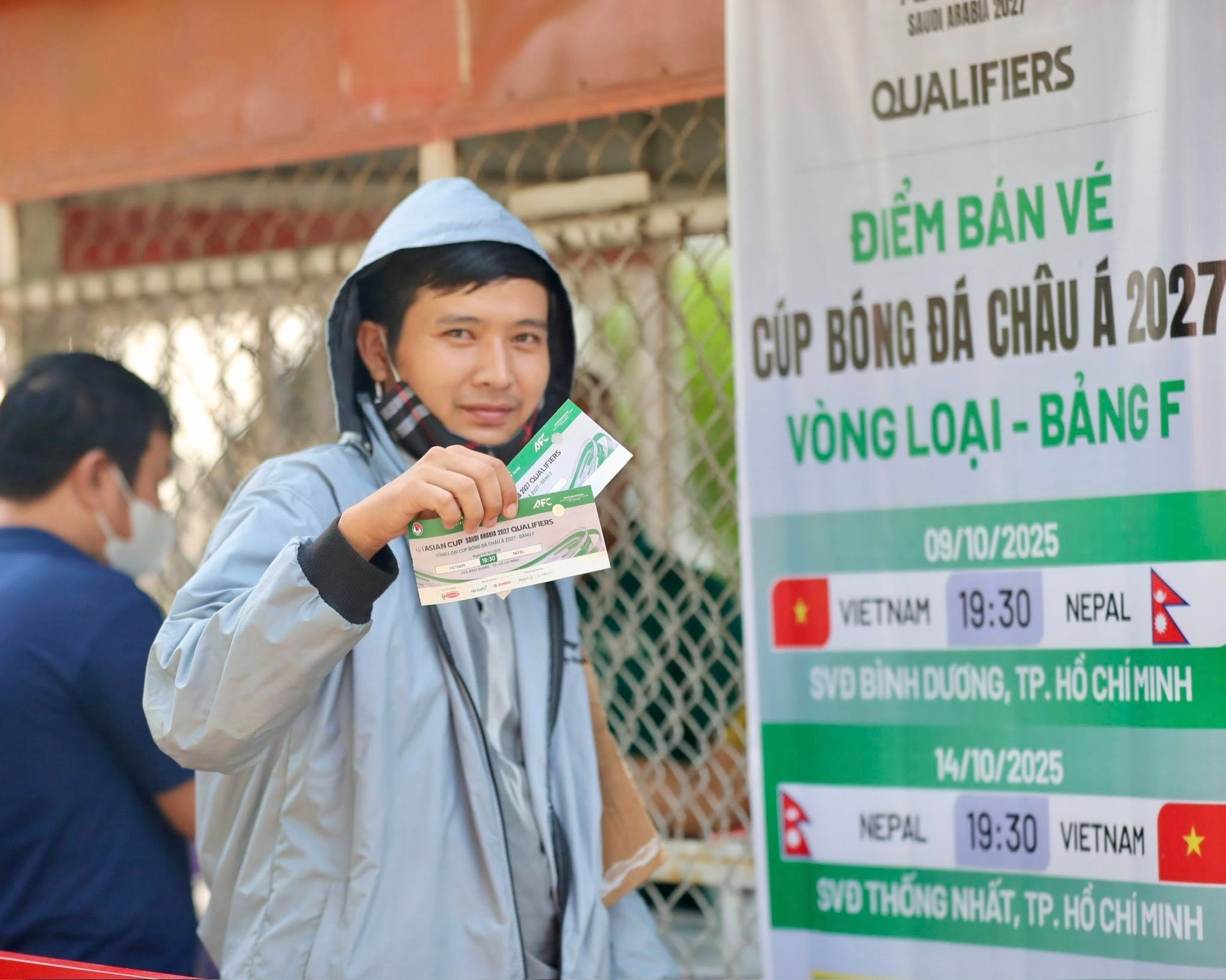 Sáng 7-10, quầy bán vé sân vận động Gò Đậu đã bắt đầu mở bán vé trực tiếp trận lượt đi vòng loại cuối Asian Cup 2027 giữa tuyển Việt Nam và tuyển Nepal, diễn ra lúc 19 giờ 30 ngày 9-10.