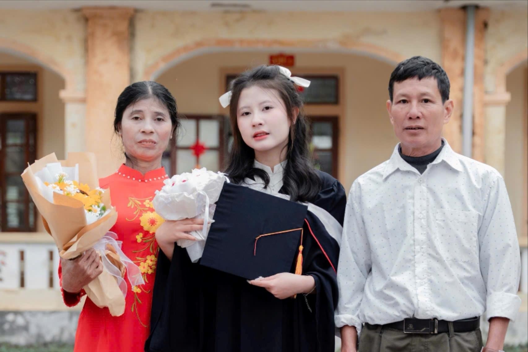 Hằng cùng gia đình trong lễ tốt nghiệp THPT. Ảnh: Nhân vật cung cấp |