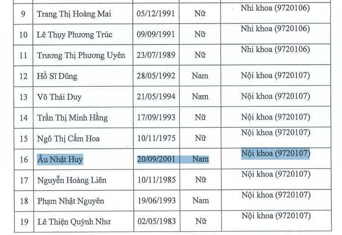 Trên trang "Liêm chính khoa học", một tài khoản có tên Tổ VAR chỉ ra rằng Âu Nhật Huy, sinh năm 2001, mới tốt nghiệp ngành y từ Trường ĐH Tân Tạo vào tháng 8-2025. Chưa đầy hai tháng sau, Huy trở thành thí sinh trẻ nhất trúng tuyển tiến sĩ tại Trường ĐH Y khoa Phạm Ngọc Thạch với vị trí á khoa.