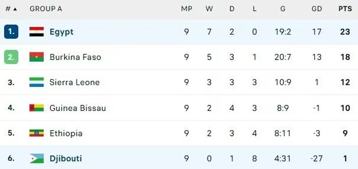 Cục diện bảng A sớm ngã ngũ, khi Burkina Faso chắc chắn giành vị trí thứ 2. Đội tuyển này có cơ hội vào top 4 đội đứng thứ 2 có thành tích tốt tại vòng loại khu vực châu Phi, qua đó đi tiếp vào vòng play-off.
