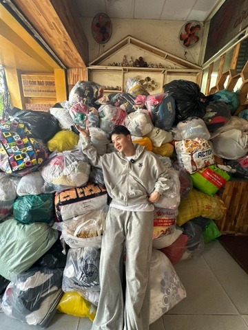 Tiktoker Vĩnh Thích Ăn Ngon bất ngờ với số lượng lớn quần áo cũ mà các mạnh thường quân đóng góp. Ảnh: Vĩnh Thích Ăn Ngon/Facebook. |