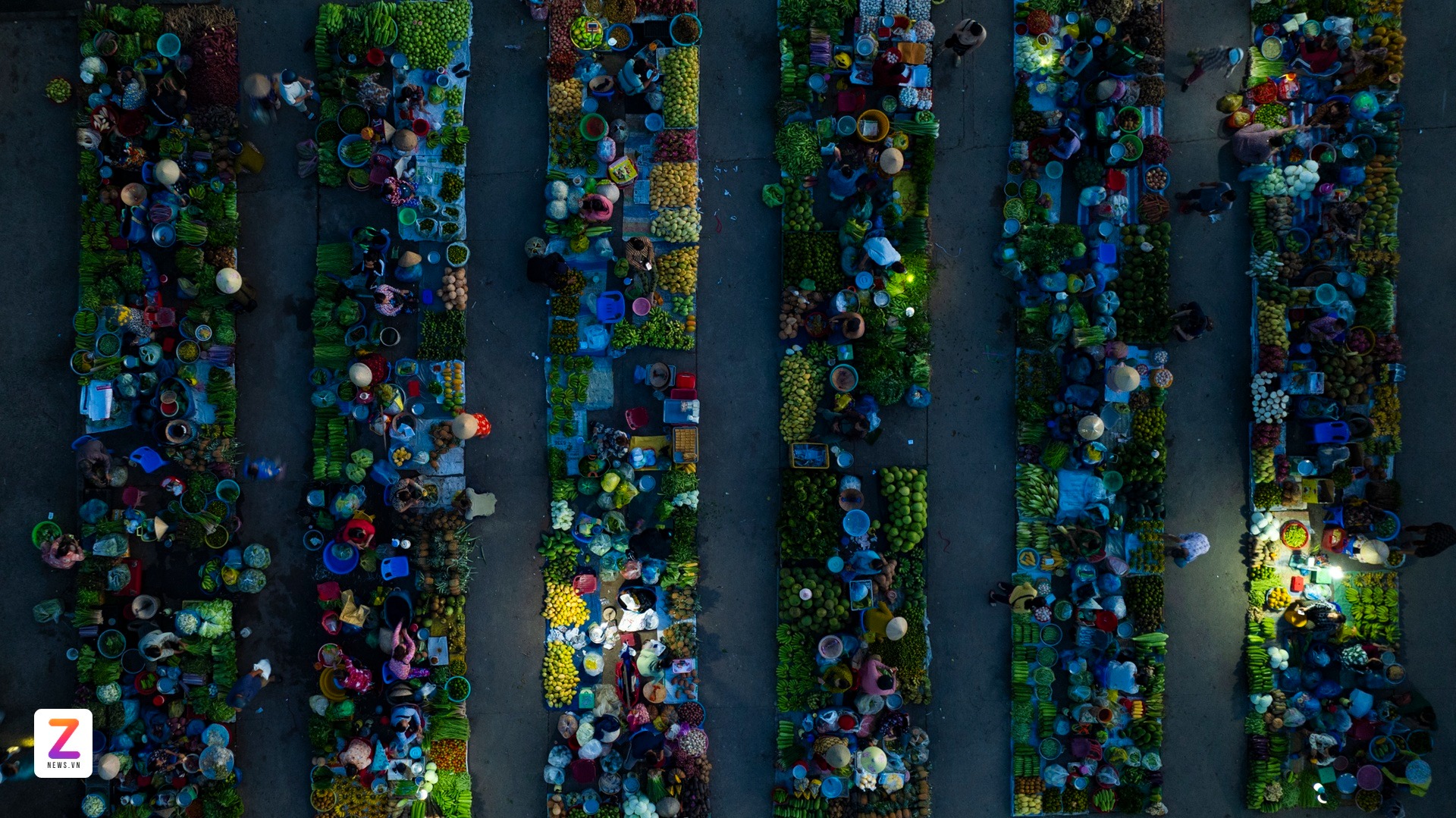 Sau khi thu hoạch rau củ và sản vật đồng quê, người dân mang ra chợ bán từ tờ mờ sáng. Từ 2-3h, người bán đã bắt đầu dọn dẹp hàng hóa, đến khoảng 5h, khu chợ trở nên nhộn nhịp. Đến khi Mặt Trời ló rạng, phần lớn các ô vuông trong chợ đều kín chỗ. |
