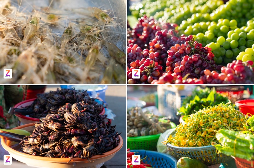 Người bán chỉ mang lượng hàng vừa đủ cho một buổi, vì vậy hàng hóa đều rất tươi ngon. Chợ nhộn nhịp từ tinh mơ đến tầm 10-11h thì người dần thưa. |