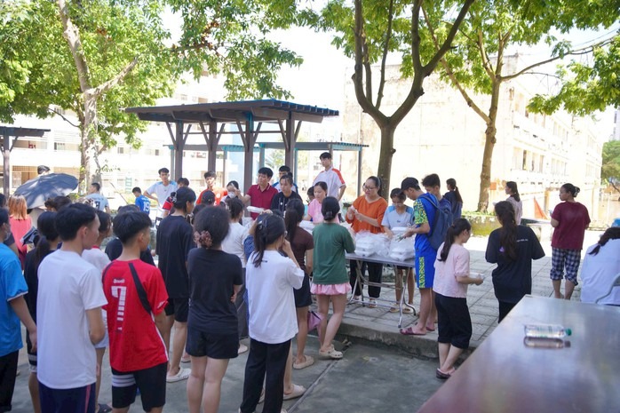 Hai ngày 8 và 9-10, nhà trường tiếp nhận 6 đoàn thiện nguyện, phát hơn 2.000 suất cơm, bánh mì, mì tôm và nước uống đến từng tầng ký túc xá. |