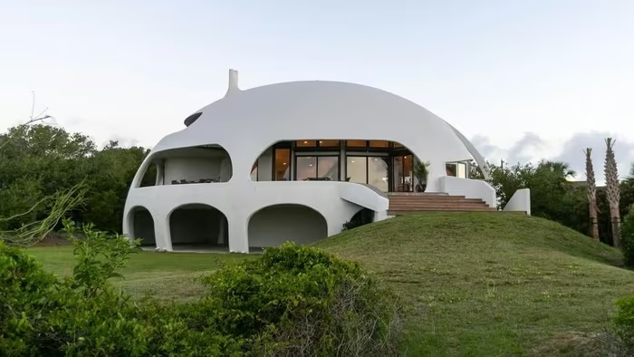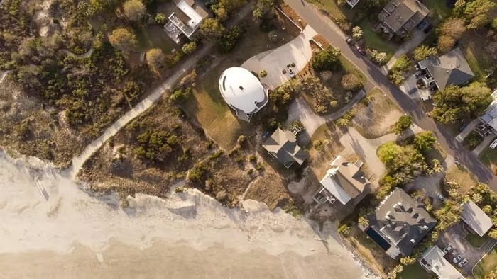 Được mệnh danh là “Mắt Bão”, ngôi nhà mái vòm, tọa lạc trên đảo Sullivan ở Charleston, Nam Carolina (Mỹ) chỉ cách bãi biển 70 mét, được thiết kế để chống chọi với những cơn bão chết người. Ảnh: CNBC |