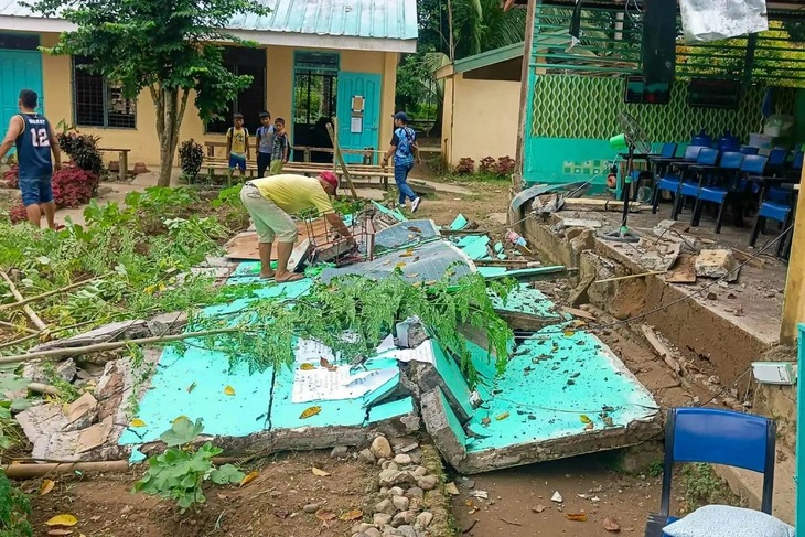 Một lớp học ở Trường tiểu học Tapia ở Montevista, Davao de Oro, sụp đổ sau trận động đất - Ảnh: RAPPLER |