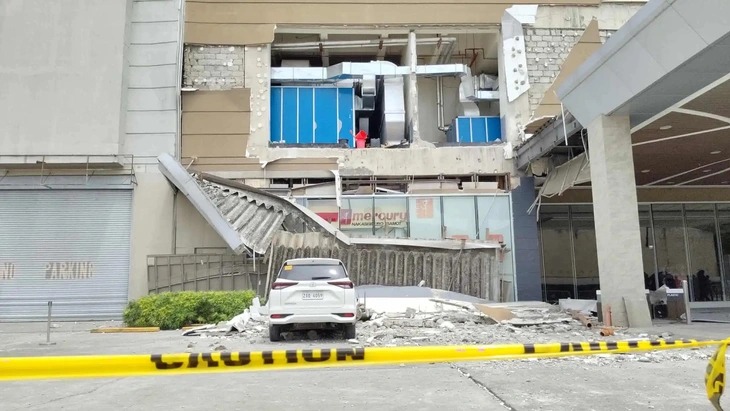 Một phần tòa nhà Robinsons Place Butuan ở thành phố Butuan đã sụp đổ trong trận động đất - Ảnh: RAPPLER |