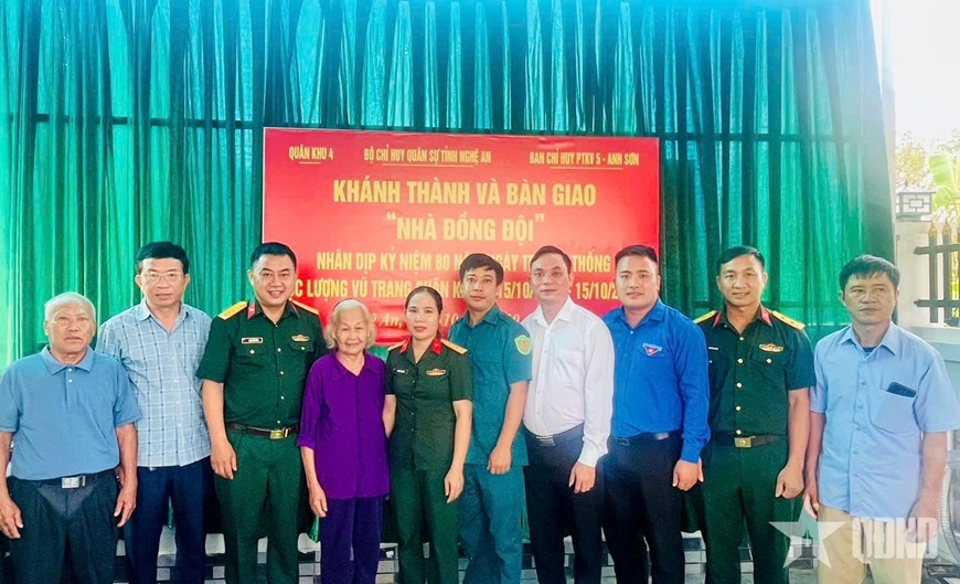 Trước đó, ngày 10-10, Ban Chỉ huy Phòng thủ Khu vực 5 - Anh Sơn đã phối hợp với chính quyền địa phương xã Đại Đồng, tỉnh Nghệ An tổ chức khánh thành và bàn giao “Nhà đồng đội” cho Đại úy QNCN Nguyễn Thị Hòa, nhân viên Hành chính đơn vị.