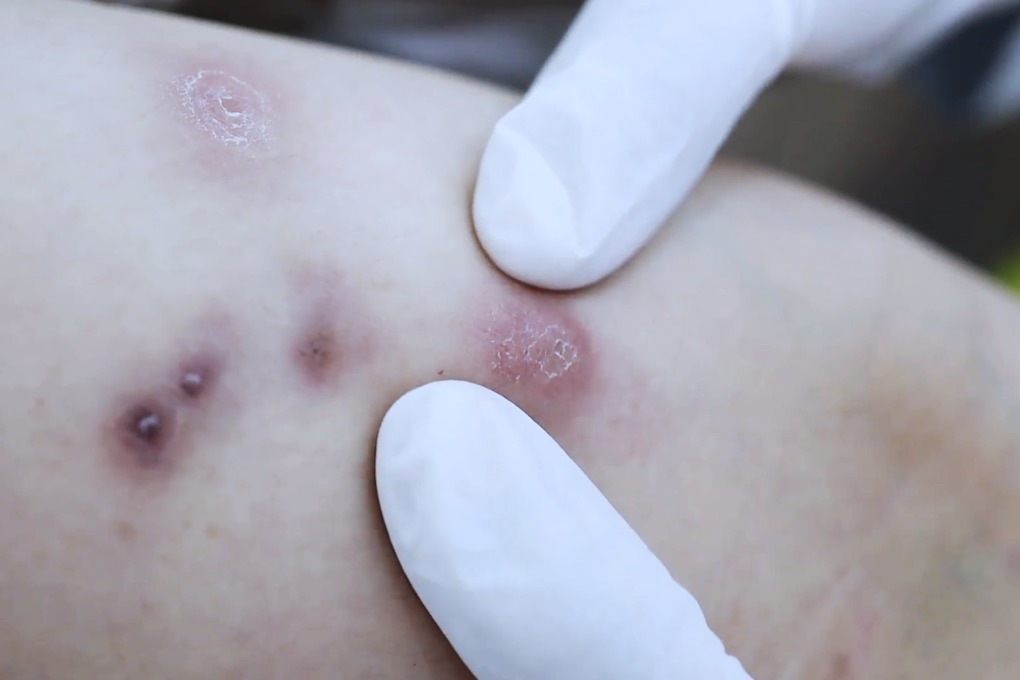 Người phụ nữ được spa kê toa kháng sinh, kháng viêm, điều trị trong 2 tháng nhưng tình trạng sưng đỏ và rỉ mủ không hết. Chưa dừng lại, bệnh nhân tiếp tục đến cơ sở này để tiêm trẻ hóa da bụng dẫn đến việc bị biến dạng cơ thể nặng nề. Tại Bệnh viện Da Liễu TP HCM, qua thăm khám, các bác sĩ chẩn đoán bệnh nhân có tình trạng áp xe đa ổ da sau tiêm tan mỡ và tiêm trẻ hóa, phải điều trị kéo dài.
