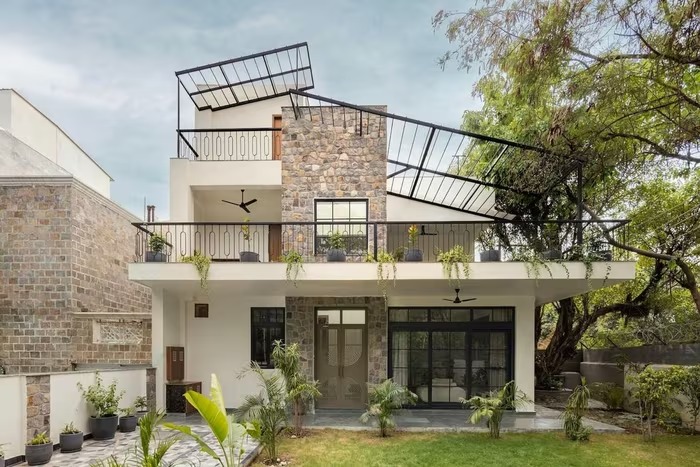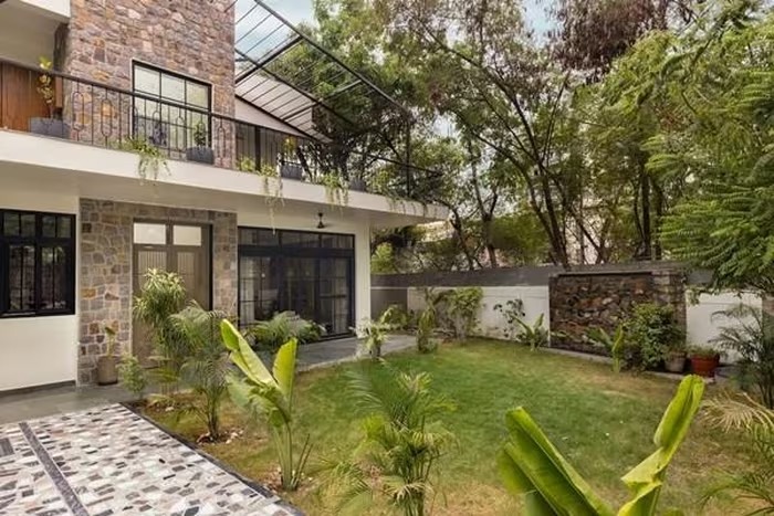 Mảnh đất có hướng Đông Bắc, một khu vườn phía trước bắt buộc, và những hàng cây đã đứng vững từ lâu trước khi bất kỳ bản vẽ nào được thực hiện. Ảnh: Purnesh Dev Nikhanj |