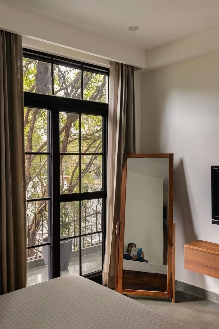 Giữa nhịp sống hối hả của Noida (Ấn Độ), ngôi nhà 3 tầng thanh mảnh mang đến một khoảng lặng. Ảnh: Purnesh Dev Nikhanj |